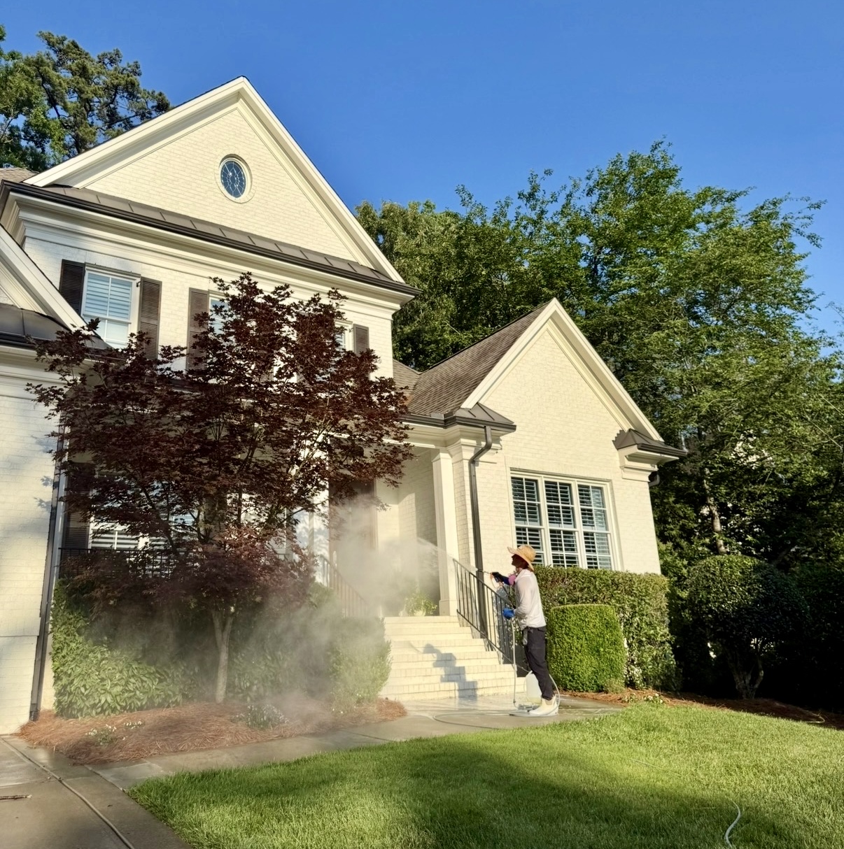 Soft washing is a safe and effective cleaning method that uses low-pressure water combined with specialized cleaning solutions to remove dirt, algae, mold, mildew, and other contaminants from the exterior of your home. Unlike pressure washing, which can damage delicate surfaces, soft washing gently cleans while preserving the integrity of your property.